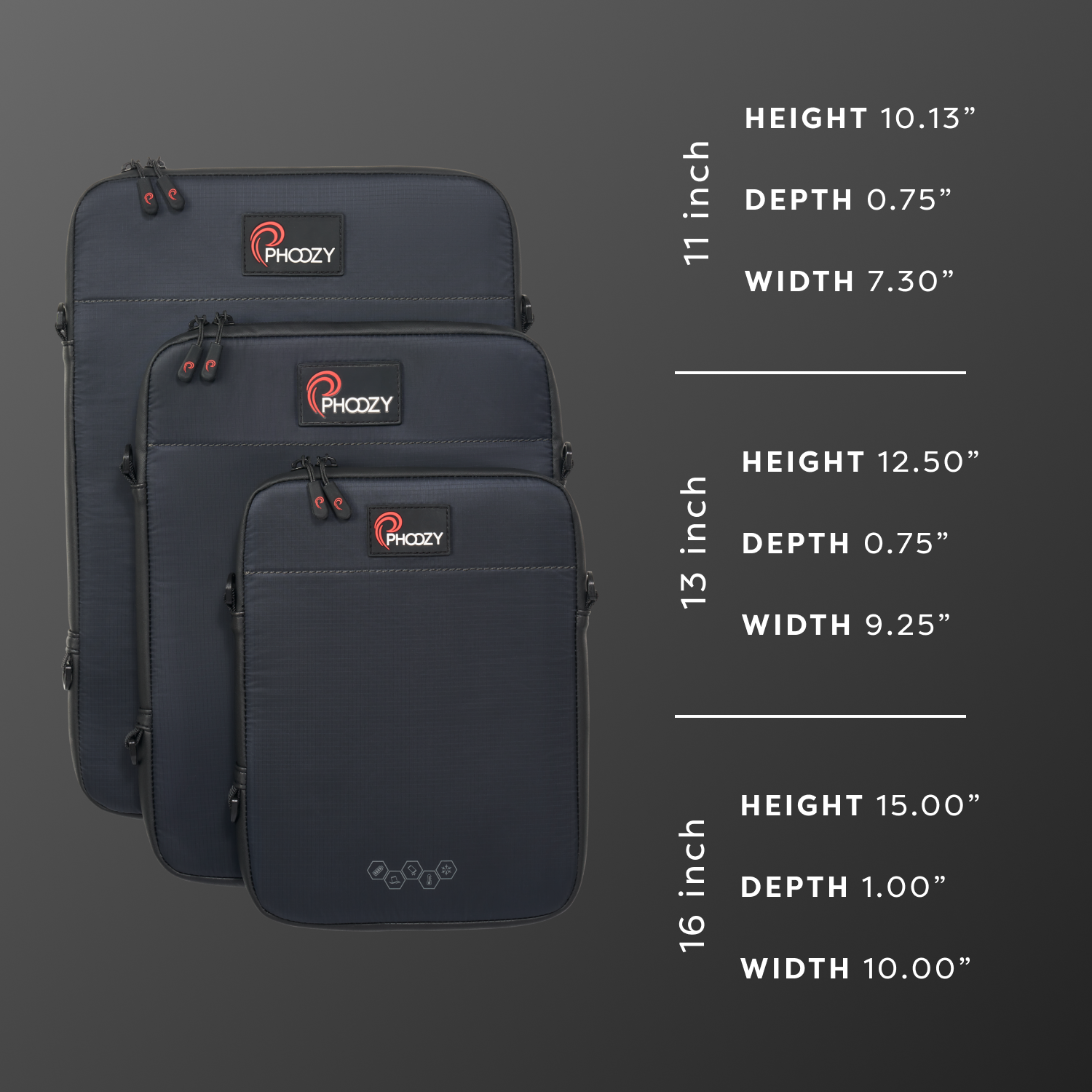 13 Inch: H 12.50 x D 0.75 x W 9.25 inches