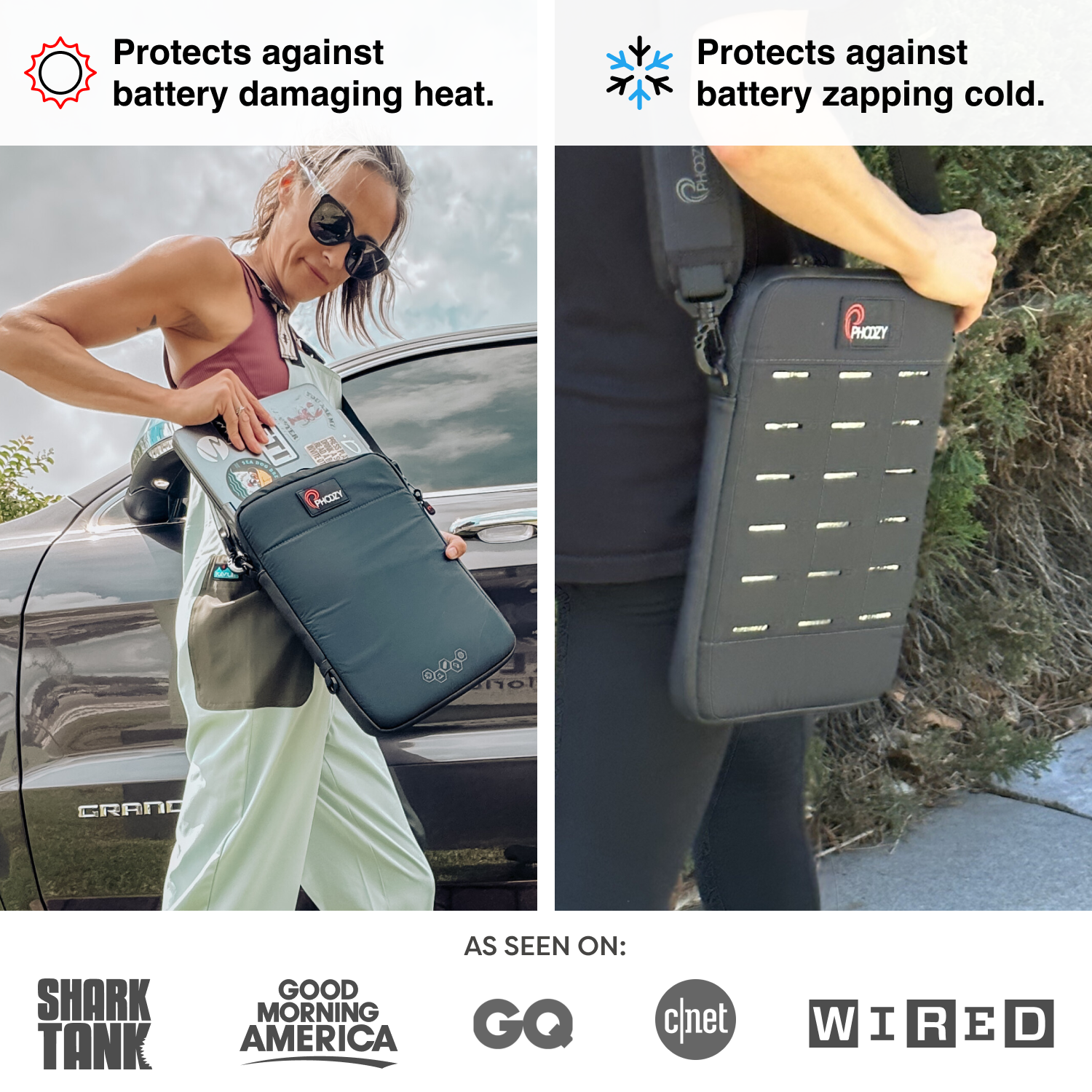 Made from materials originally developed by NASA for spacesuits, our patented Chromium Thermal Barrier helps prevent your devices from overheating in the sun and shields against battery zapping cold to extend battery life.